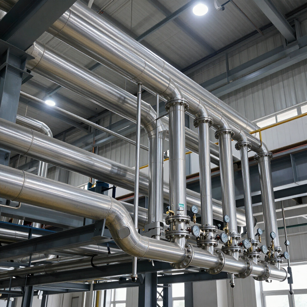 Material y crecimiento. Selecciona material compatible con el ambiente (corrosión, temperatura) y deja capacidad para ampliaciones: tees previstas, válvulas de seccionamiento y espacios para nuevos equipos de tratamiento.