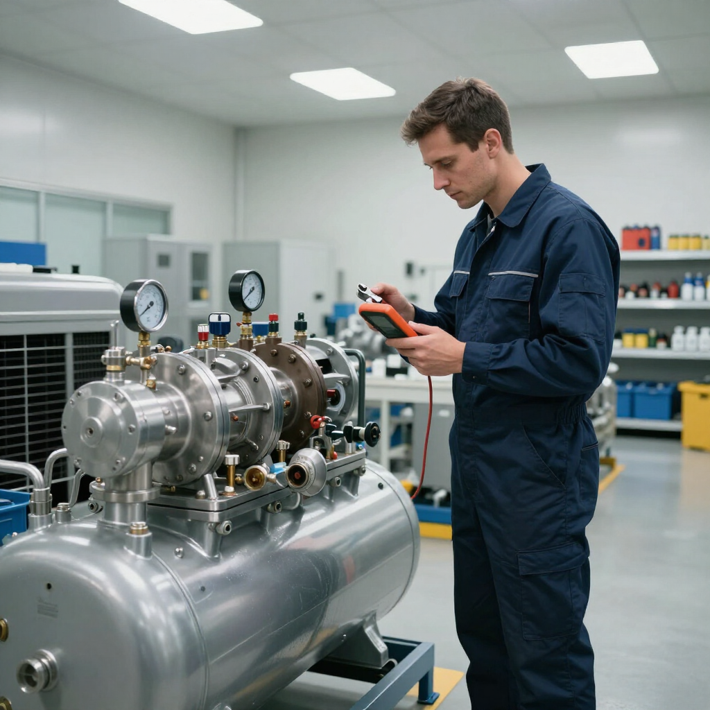 Diario/semanal: verifica presiones de operación, temperatura de descarga, ruidos anómalos y estado de drenajes automáticos. Revisa nivel de aceite (si aplica) y que no existan alarmas en controladores.